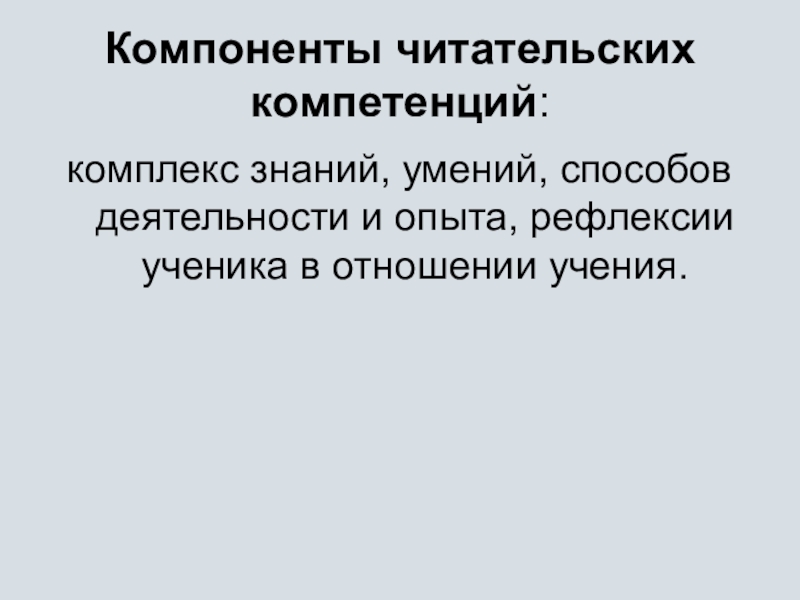 Слайд 7Компоненты читательских компетенций: