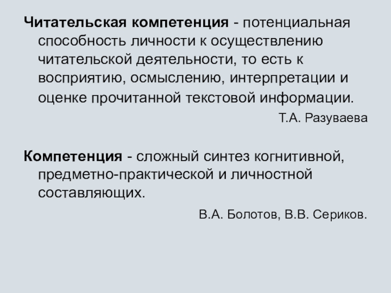 Слайд 1Читательские компетенции: содержание понятия, проблема диагностики.