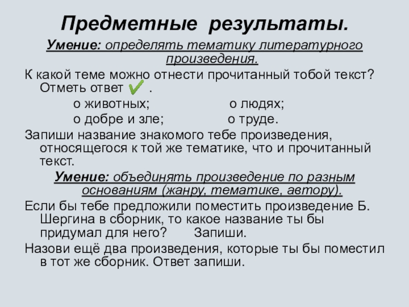 Умение: определять тематику литературного произведения.