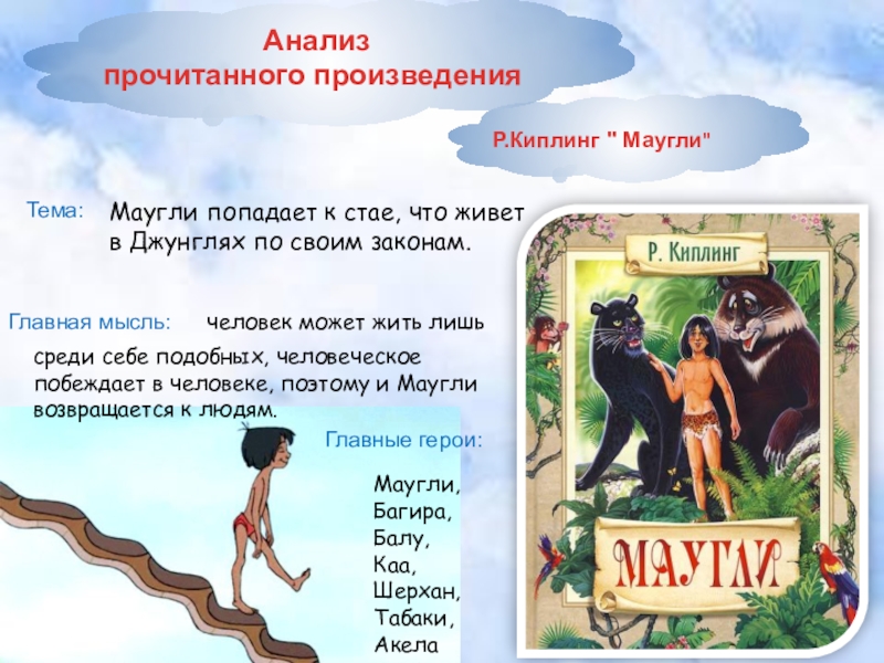 среди себе подобных, человеческое побеждает в человеке, поэтому и Маугли возвращается к людям.
