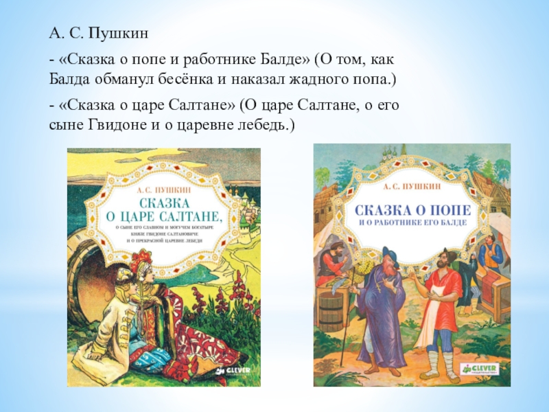 - «Сказка о царе Салтане» (О царе Салтане, о его сыне Гвидоне и о царевне лебедь.)
