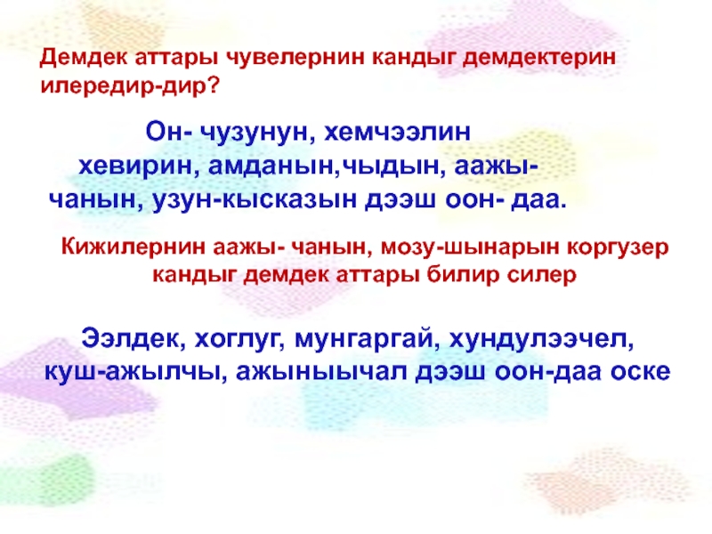 кандыг демдек аттары билир силер