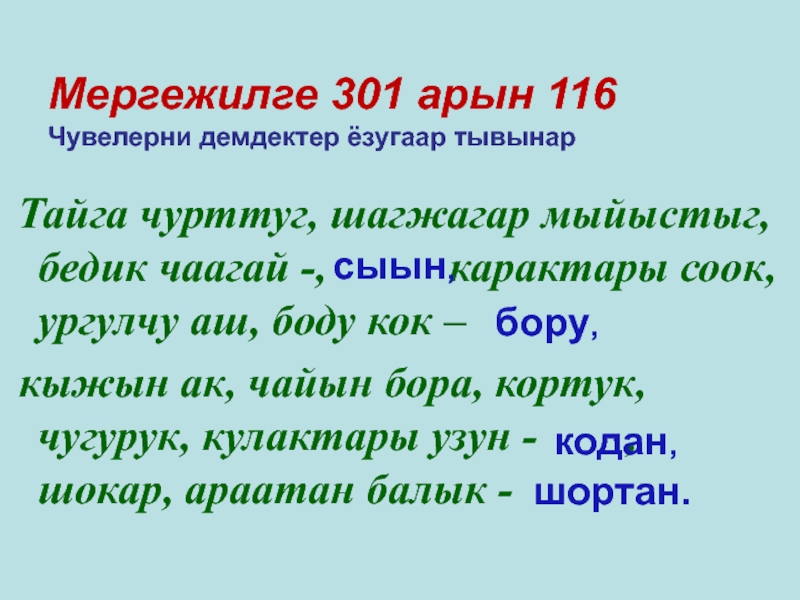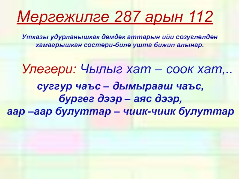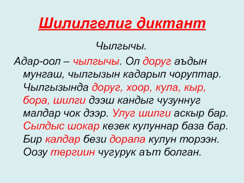 Улегери: Чылыг хат – соок хат,..