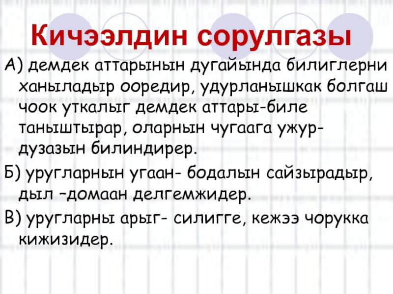 Кичээлдин сорулгазы