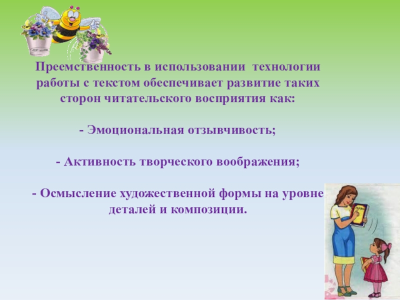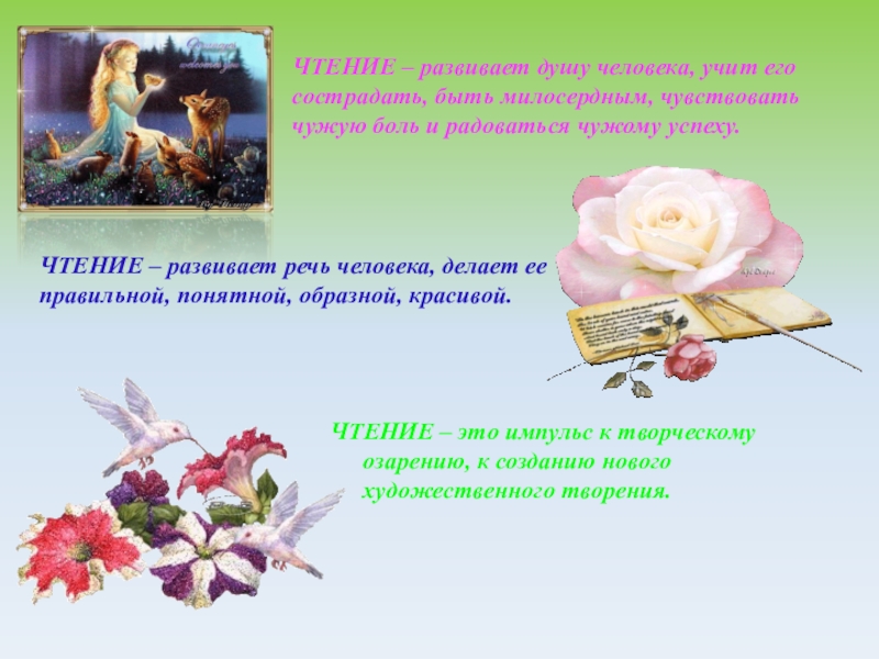 ЧТЕНИЕ – развивает речь человека, делает ее правильной, понятной, образной, красивой.