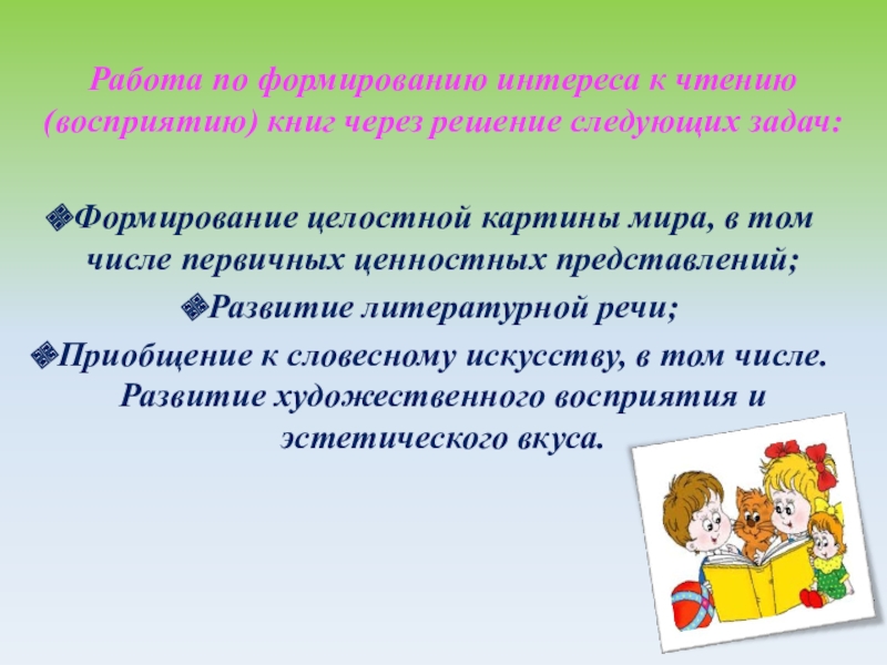 приобщения детей к книге, формирования грамотного читателя.