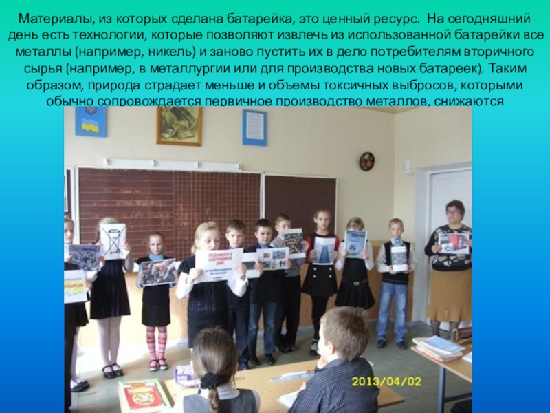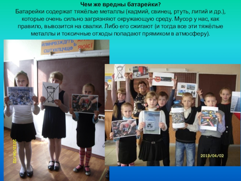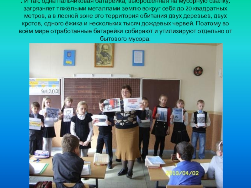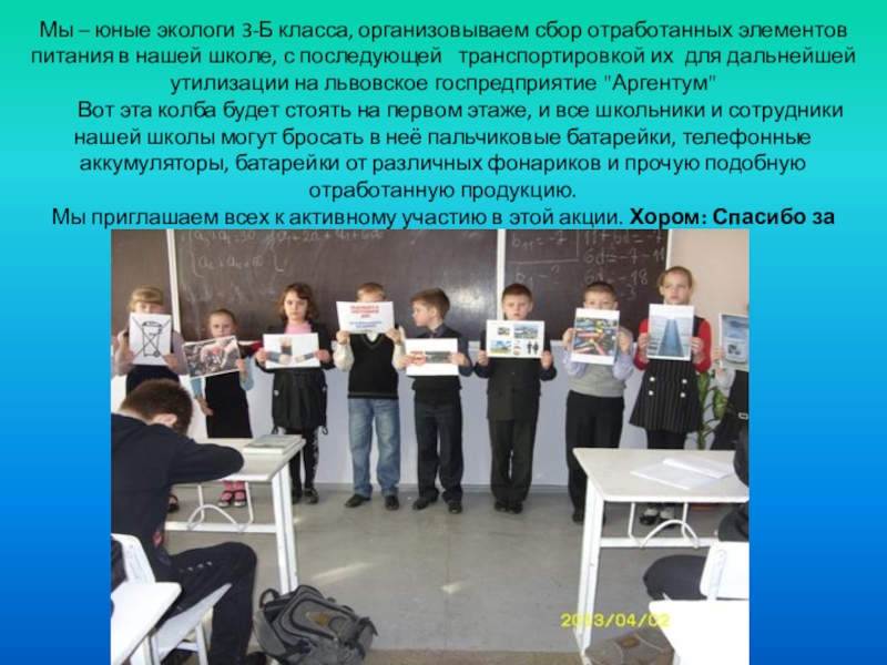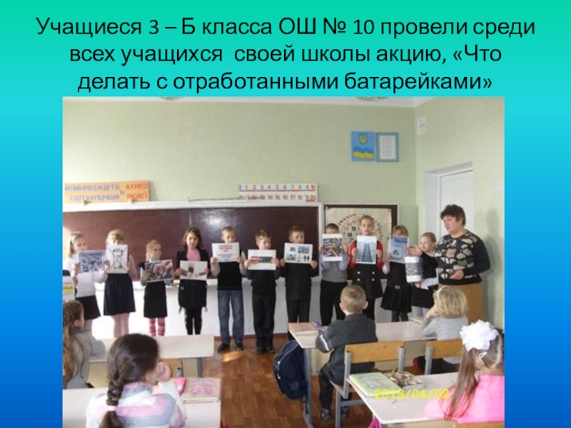 Мы – юные экологи 3-Б класса, организовываем сбор отработанных элементов питания