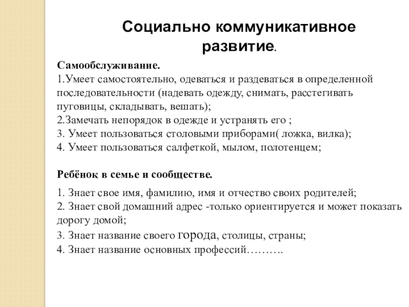 1. Знает свое имя, фамилию, имя и отчество своих родителей;