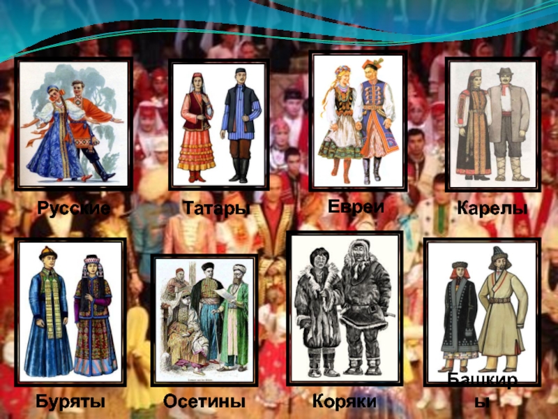 Русские Татары Евреи Карелы Буряты Осетины Башкиры Коряки