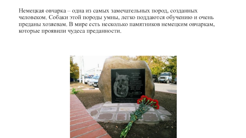 Слайд 4Немецкая овчарка – одна из самых замечательных пород, созданных человеком. Собаки