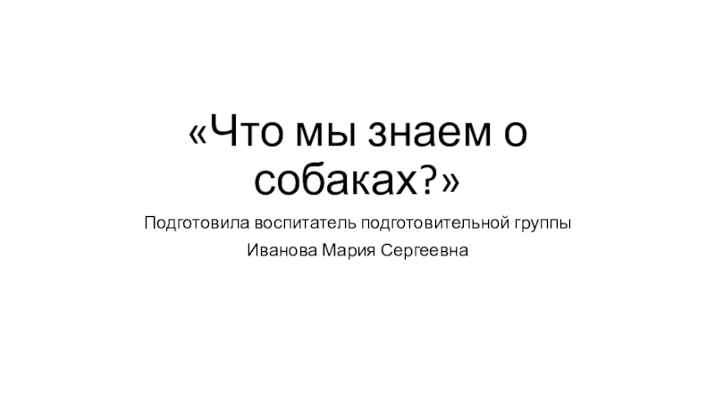 «Что мы знаем о собаках?»Подготовила воспитатель подготовительной группыИванова Мария Сергеевна