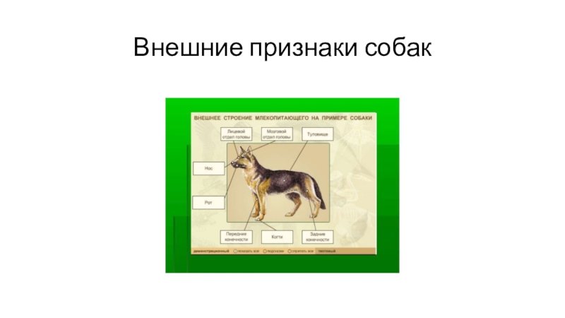 Слайд 3Внешние признаки собак