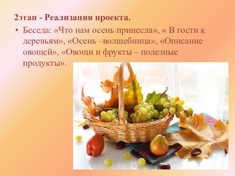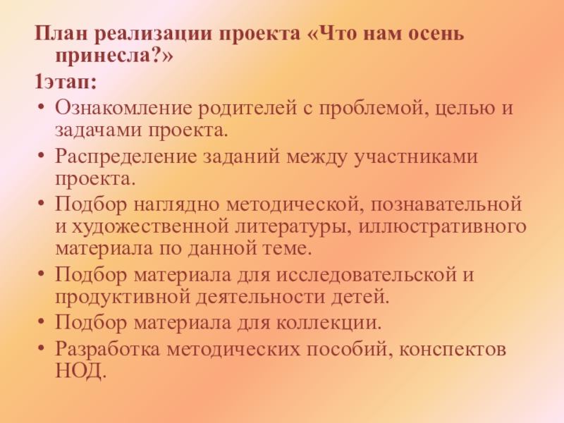 Слайд 11План реализации проекта «Что нам осень принесла?»