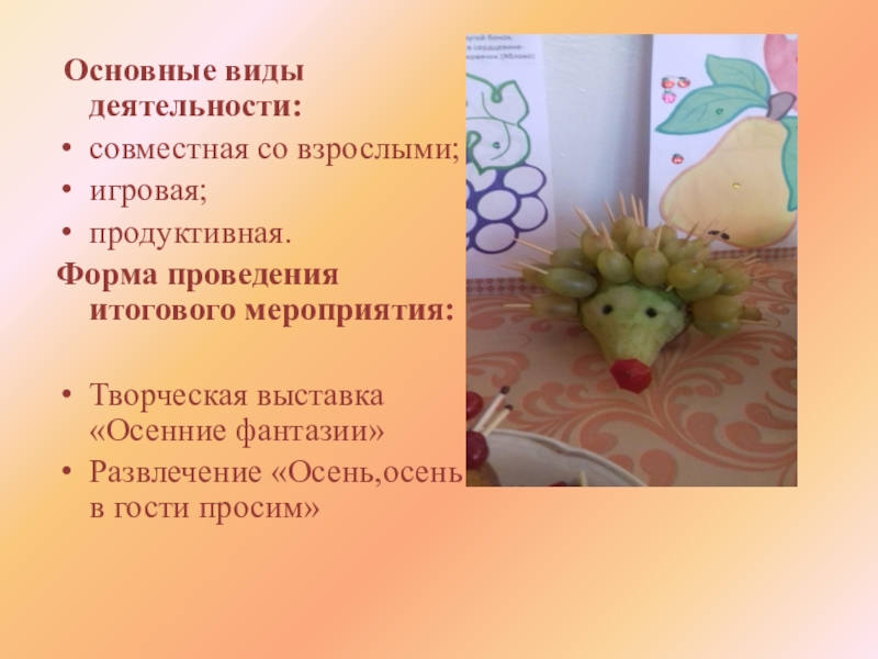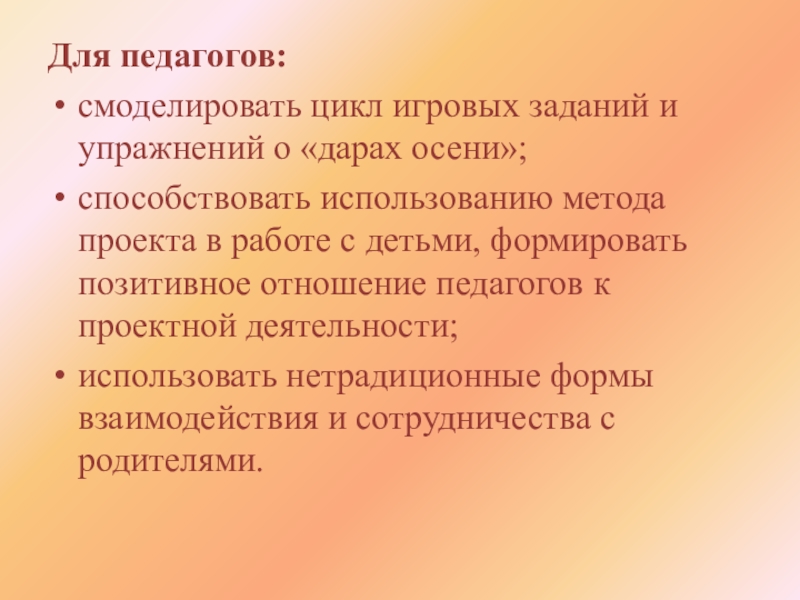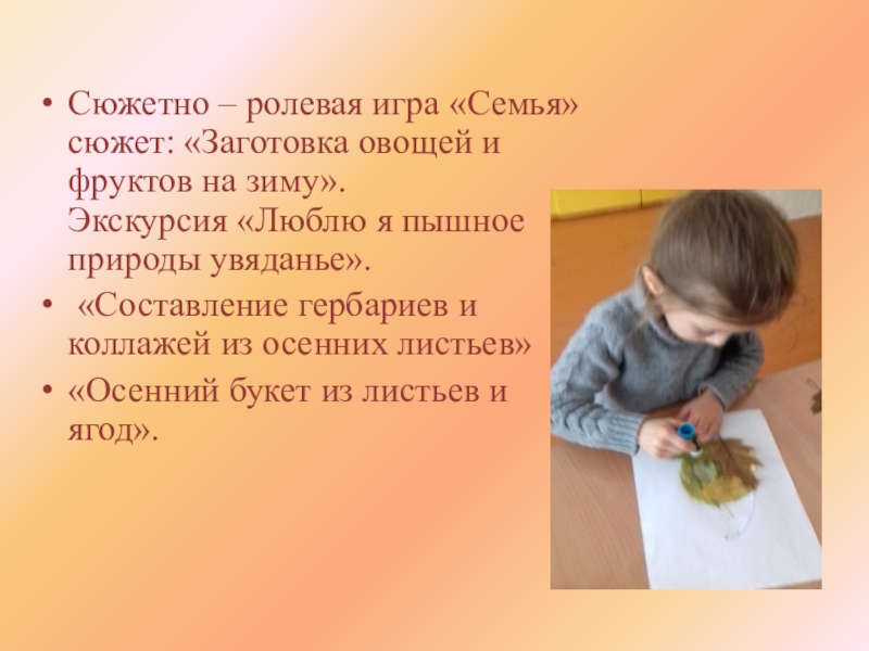 смоделировать цикл игровых заданий и упражнений о «дарах осени»;