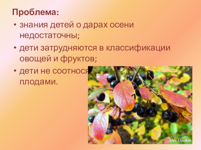 знания детей о дарах осени недостаточны;