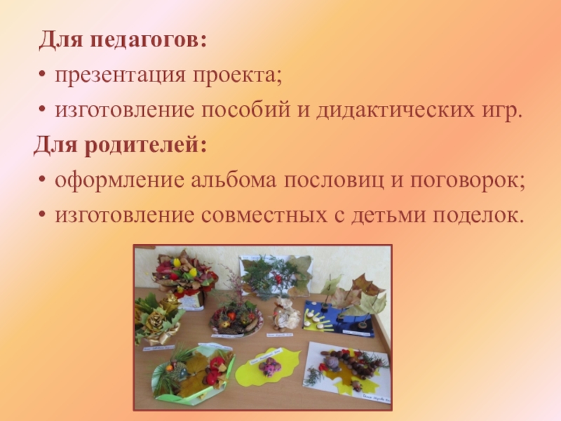 изготовление совместных с детьми поделок.