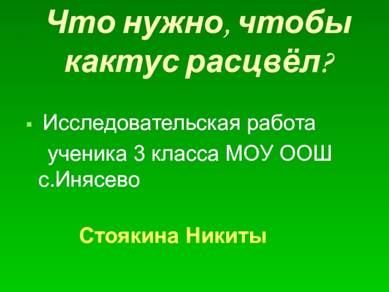 Слайд 1Что нужно, чтобы кактус расцвёл?