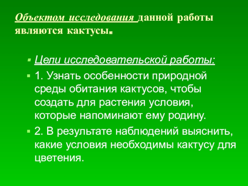 Слайд 2Объектом исследования данной работы являются кактусы.