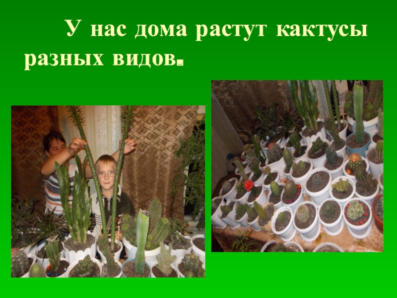 Слайд 12 У нас дома растут кактусы разных видов.