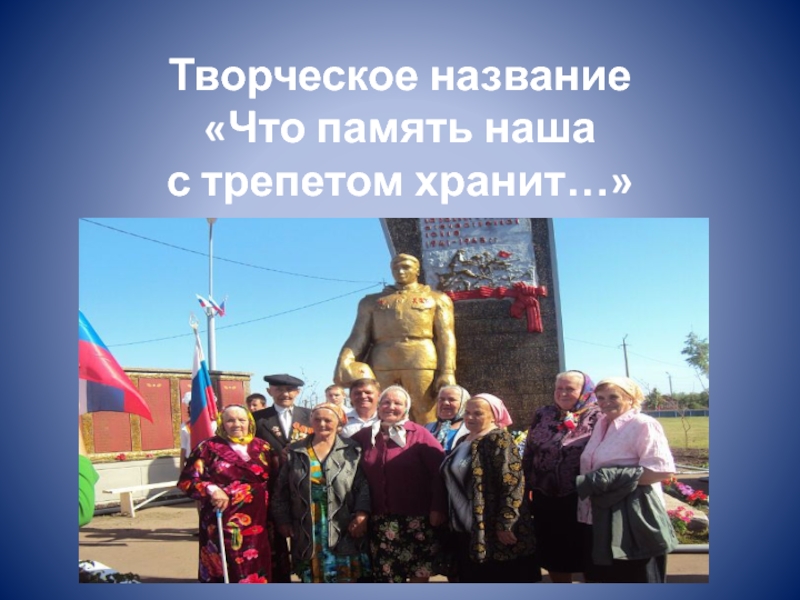 Слайд 2 Творческое название «Что память наша с трепетом хранит…»
