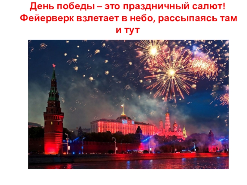Слайд 2День победы – это праздничный салют! Фейерверк взлетает в небо, рассыпаясь там