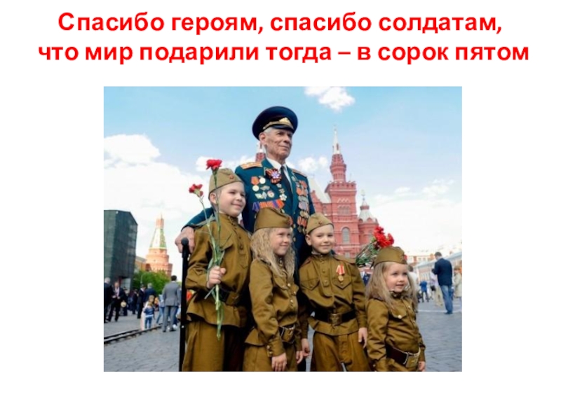 Слайд 18Спасибо героям, спасибо солдатам, что мир подарили тогда – в сорок