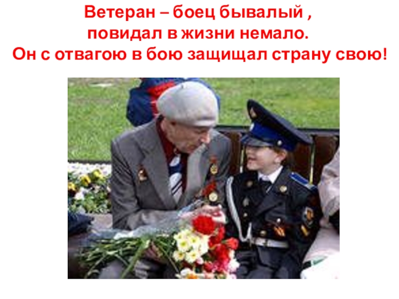 Слайд 8Ветеран – боец бывалый , повидал в жизни немало. Он с отвагою