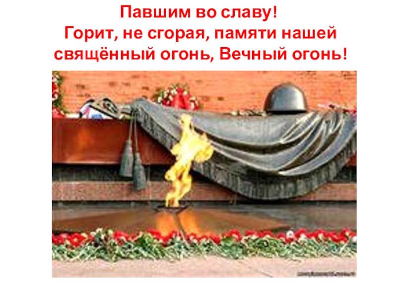 Павшим во славу! Горит, не сгорая, памяти нашей свящённый огонь, Вечный огонь!