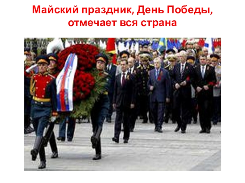 Слайд 6Майский праздник, День Победы, отмечает вся страна