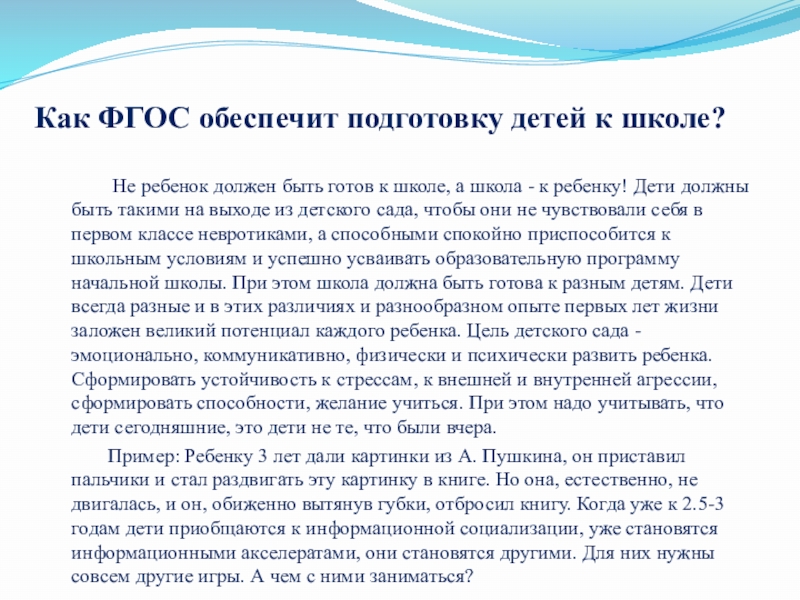 Слайд 14Как ФГОС обеспечит подготовку детей к школе?