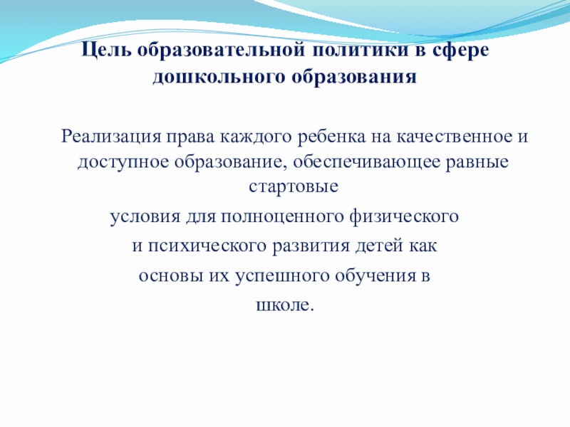 Слайд 3Цель образовательной политики в сфере дошкольного образования