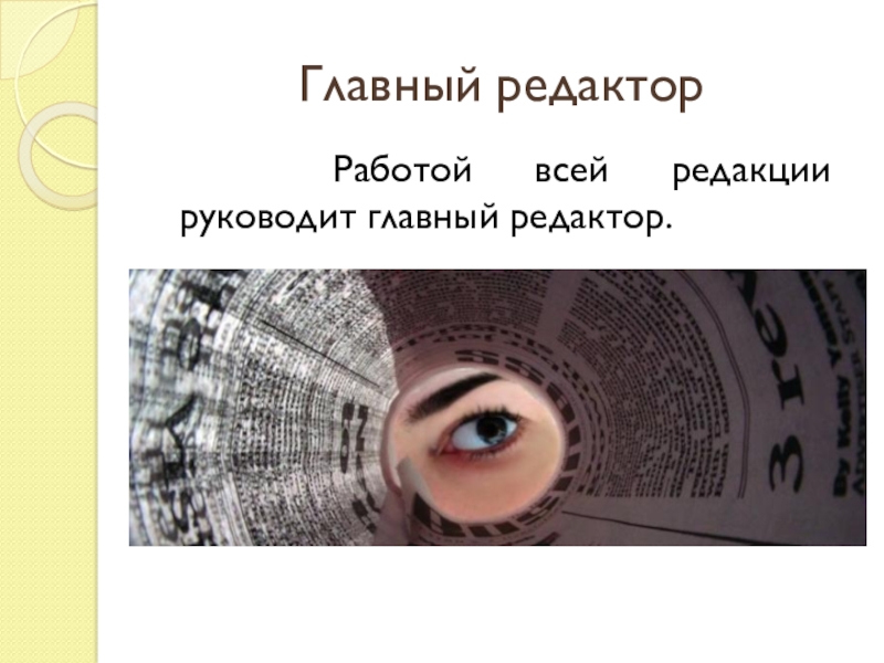 Главный редактор  Работой всей редакции руководит главный редактор.