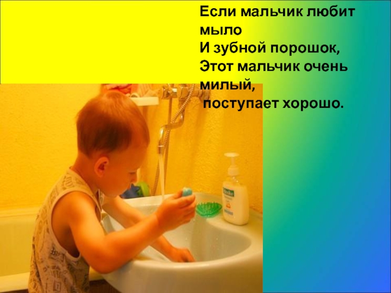 Слайд 10Если мальчик любит мыло И зубной порошок, Этот мальчик очень милый, поступает