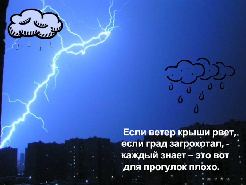 Слайд 7 Если ветер крыши рвет, если град загрохотал, - каждый знает –