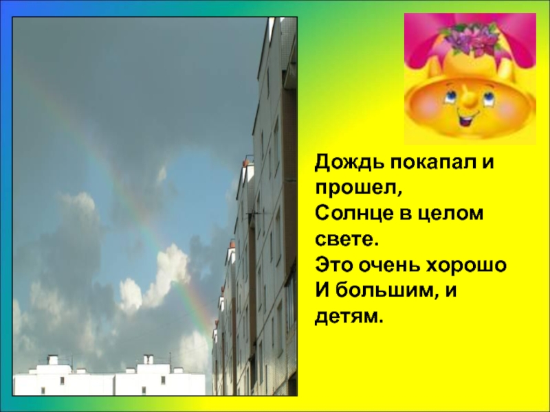 Слайд 8Дождь покапал и прошел, Солнце в целом свете. Это очень хорошо И