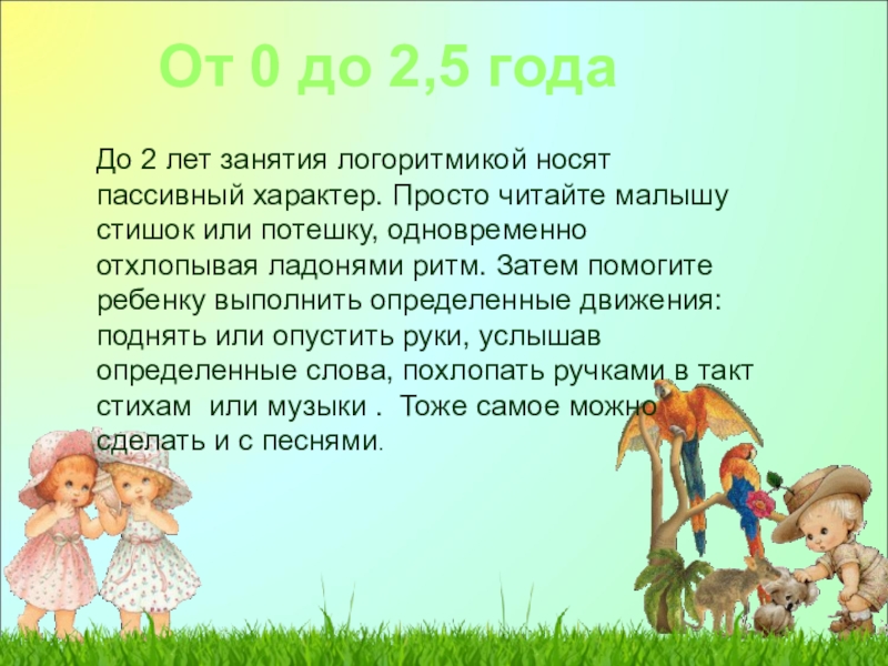 До 2 лет занятия логоритмикой носят пассивный