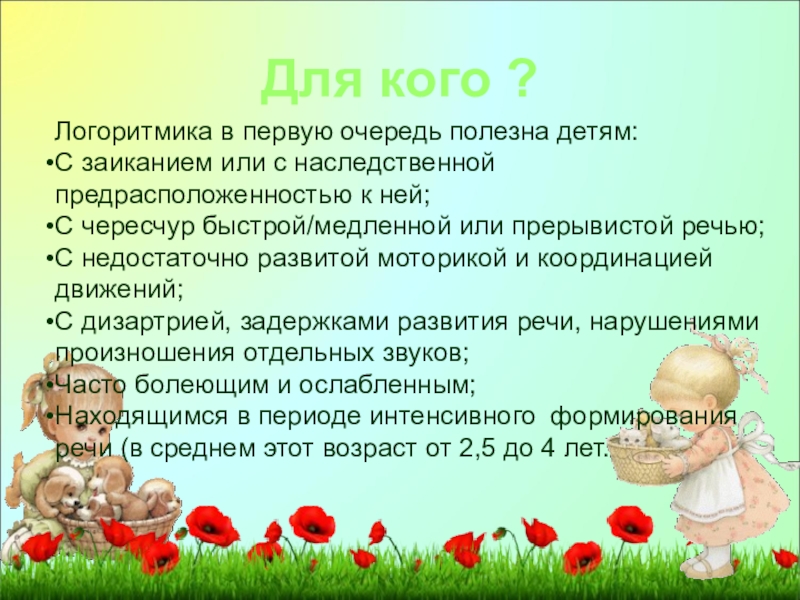 Находящимся в периоде интенсивного формирования речи (в среднем этот возраст от 2,5 до 4 лет.