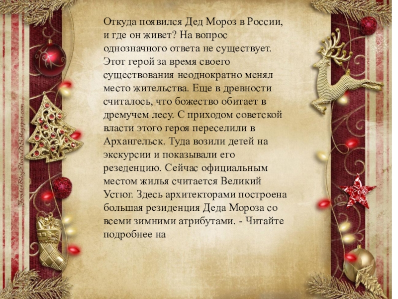 Слайд 9Откуда появился Дед Мороз в России, и где он живет? На