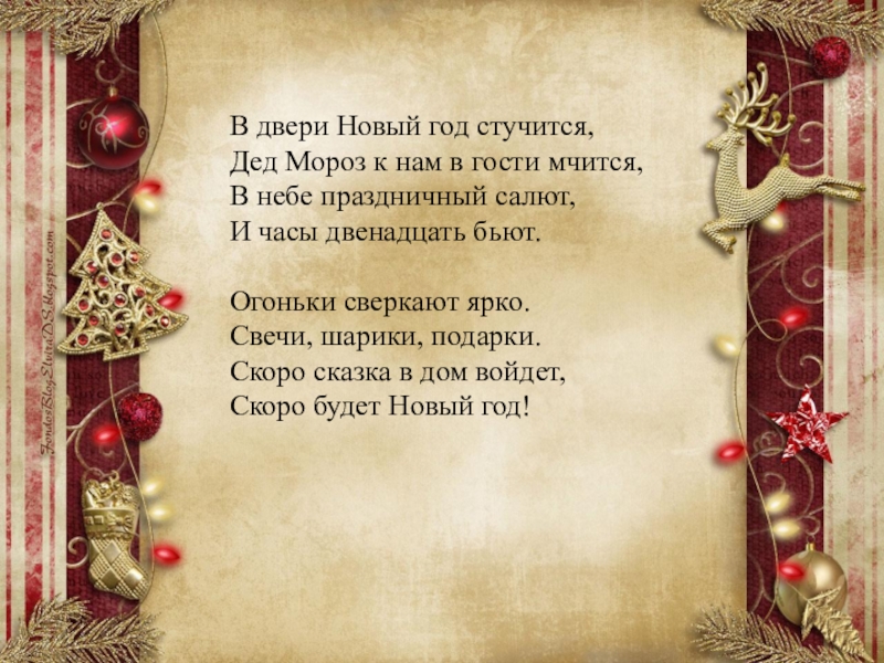Слайд 14В двери Новый год стучится,