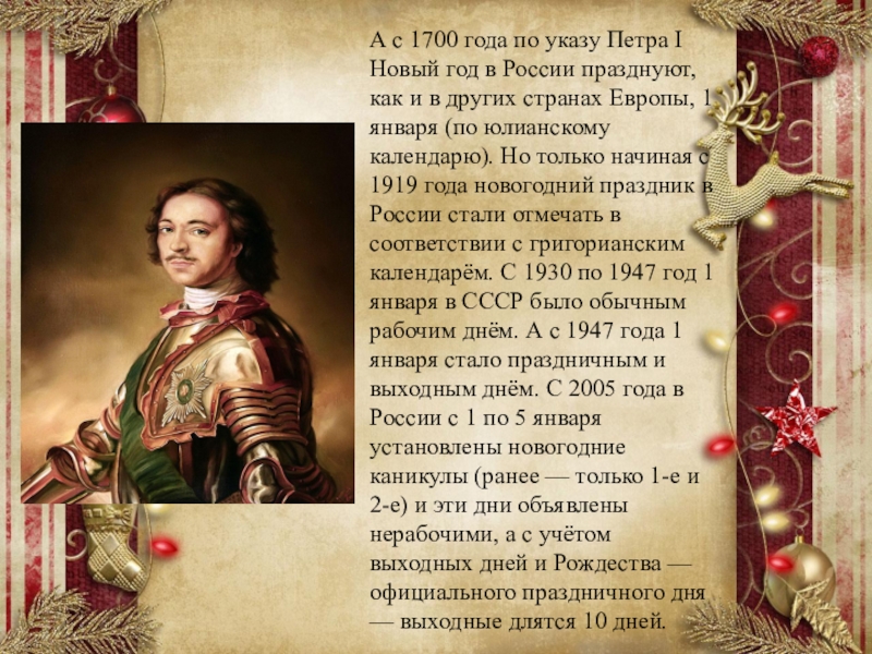 Слайд 2А с 1700 года по указу Петра I Новый год в