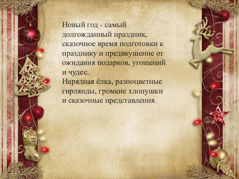 Слайд 12Новый год - самый долгожданный праздник, сказочное время подготовки к празднику