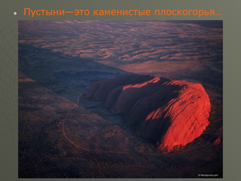 Слайд 7Пустыни—это каменистые плоскогорья…