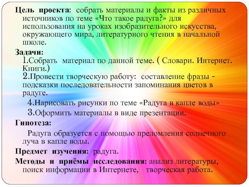 материал о радуге. В «Толковом словаре русского языка мы нашли определение слову «радуга»:
