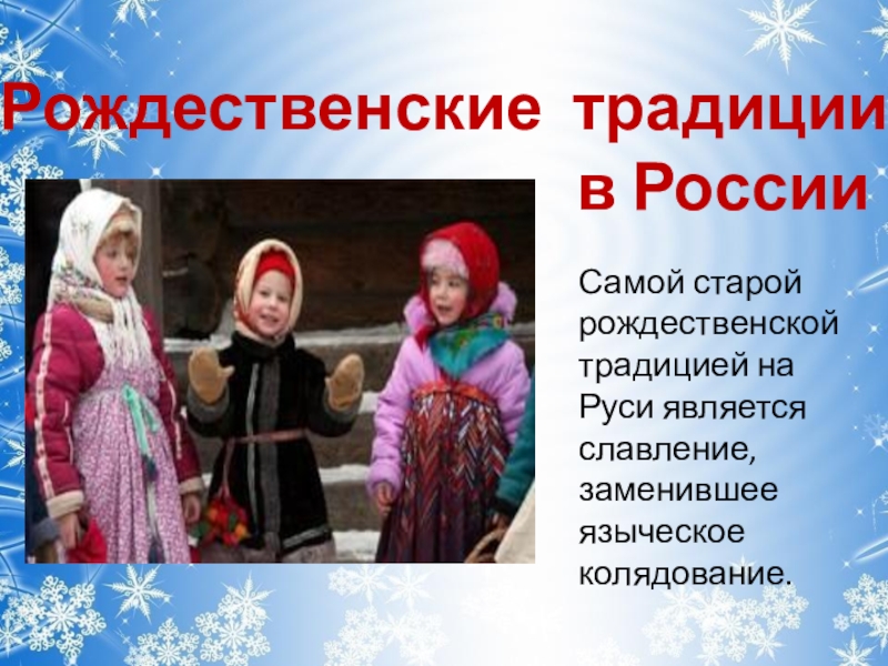 Самой старой рождественской традицией на Руси является славление, заменившее языческое колядование.