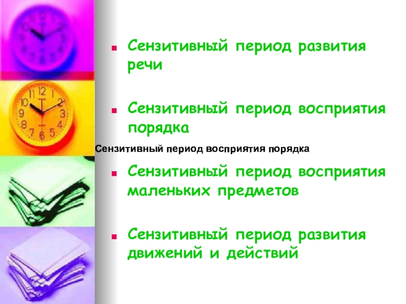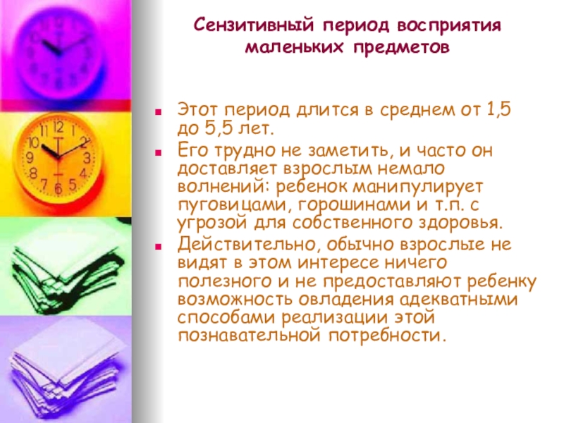 Слайд 21Сензитивный период восприятия маленьких предметов
