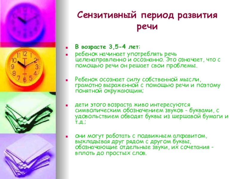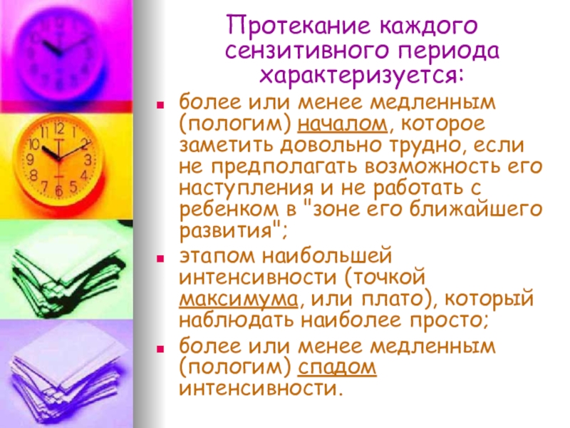 взрослый может наблюдать проявления, характерные для наиболее интенсивных этапов протекания того или иного сензитивного периода, что необходимо для точной оценки актуального уровня развития ребенка;