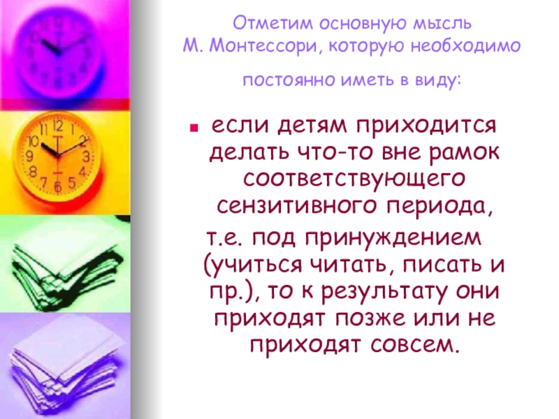М. Монтессори, которую необходимо постоянно иметь в виду: