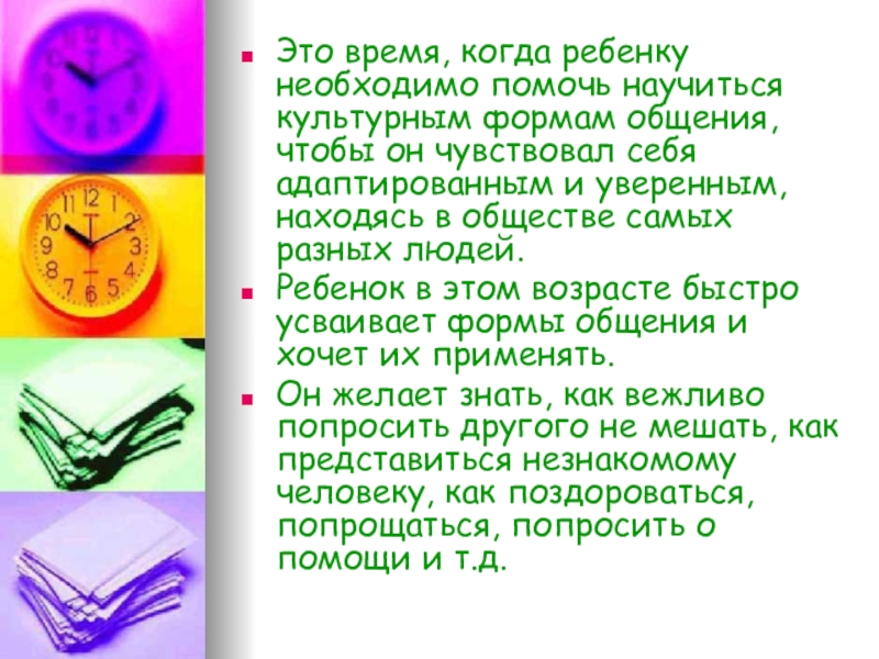 Это время, когда ребенку необходимо помочь научиться культурным формам общения, чтобы