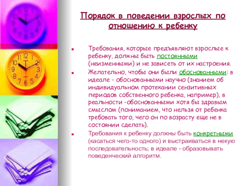 к ребенку, должны быть постоянными (неизменными) и не зависеть от их настроения.