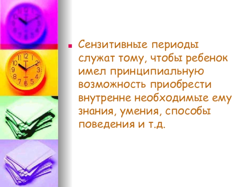 Сензитивные периоды служат тому, чтобы ребенок имел принципиальную возможность приобрести внутренне